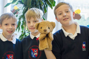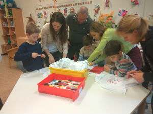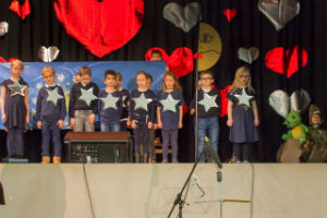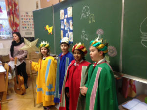 Gemeinsame Martinsfeier der 1b mit ihren Schulengerln aus der 4b