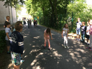Die Kinder konnten in Experimenten lernen, dass sich der Anhalteweg aus Reaktionsweg plus Bremsweg ergibt und ein Fußgänger immer schneller stehen bleiben kann, als ein Auto.