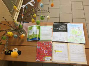 "Gott in allen Dingen finden", ist ein Leitsatz der ignatianischen Pädagogik. Die Kinder der 1b bekamen den Auftrag: "Suche etwas, das dir über Gott erzählt." Gefunden wurde viel, eine Frühlingsblüte, Bärlauch, weil Gott uns zu Essen gibt, und eine Raupe.
