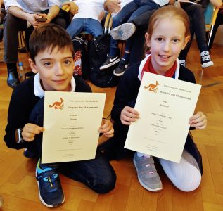Auch heuer nahmen viele Kinder unserer Volksschule beim Känguru-Wettbewerb teil.Dieser Wettbewerb soll Lust auf Mathematik machen. Die Kinder wurden zum Rechnen, Knobeln und Nachdenken eingeladen. Drei Kinder schafften es, Top-Platzierungen zu erzielen. Sie erreichten den 2. und 4.Platz in der Gesamtwertung aus dem Bundesland Wien. Die Ehrungen fanden in der Bildungsdirektion Wien statt. Herzliche Gratulation an unsere tollen Mathematiker/innen.