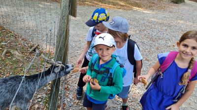 Im Rahmen einer wald- und erlebnispädagogischen Führung konnten die Kinder nicht nur viele Wildschweine und ihre Frischlinge beobachten, sondern auch einiges Wissenswertes über den Wald erfahren und sogar im Wald Tipis bauen!